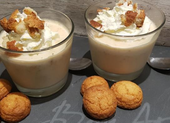 Bitterkoekjes bavarois/witte stoofpeertjes/caram