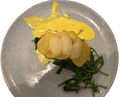 Pastinaak puree midden op het bord leggen.